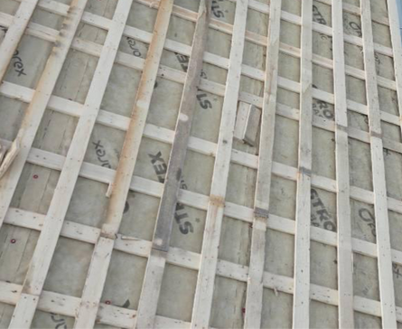Double wood strapping was installed to create a strong and ventilated base. This ensures proper support for the metal roofing system.